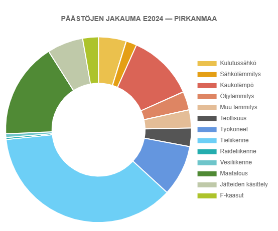 Pirkanmaan kokonaispäästöt ovat vähentyneet vuoden 2023–2024 välillä noin 5 prosenttia